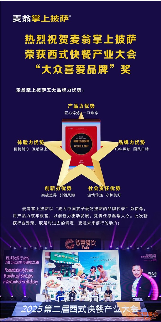 麦翁掌上披萨|实力认证!麦翁掌上披萨荣膺西式快餐产业大会 “大众喜爱品牌”
