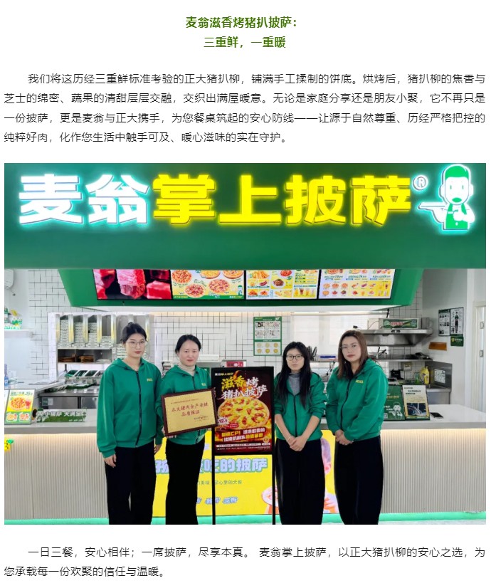 从农场到餐桌 / 麦翁掌上披萨与正大集团强强联手筑牢餐桌安全!