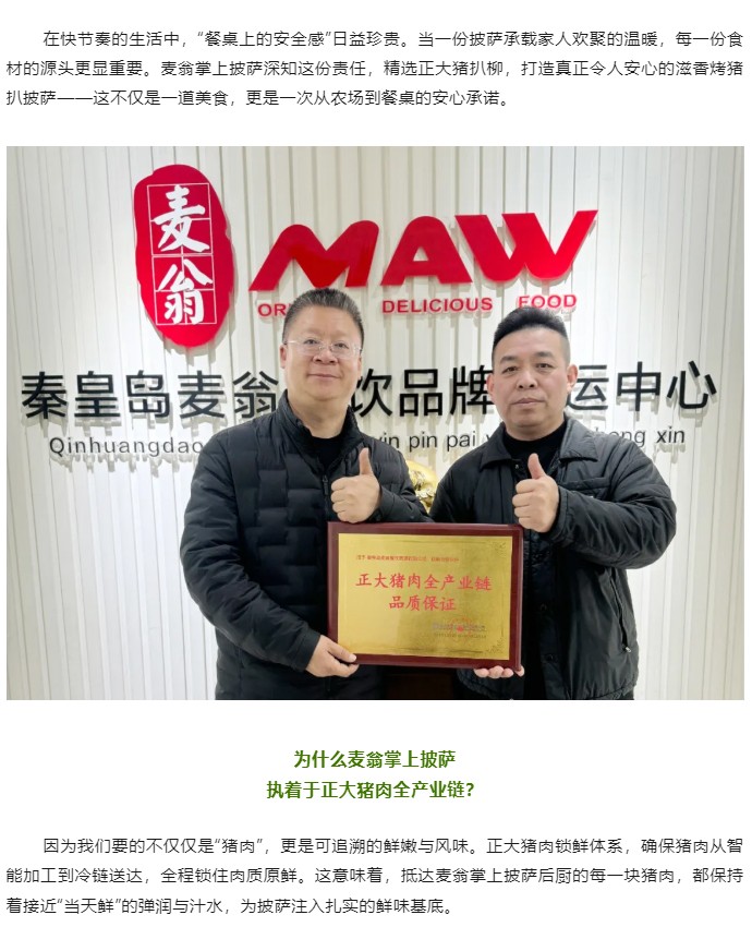 从农场到餐桌 / 麦翁掌上披萨与正大集团强强联手筑牢餐桌安全!_