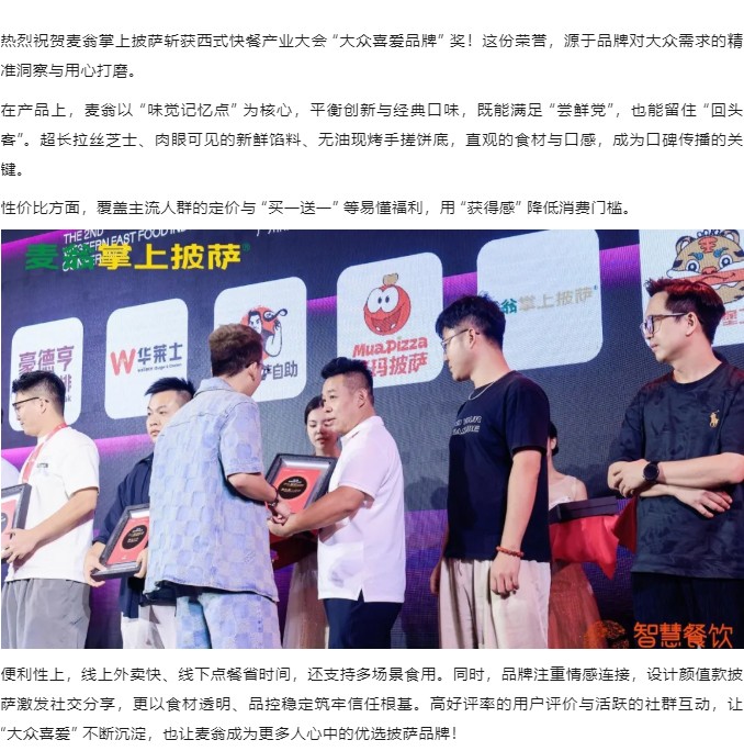 麦翁掌上披萨|实力认证!麦翁掌上披萨荣膺西式快餐产业大会 “大众喜爱品牌”